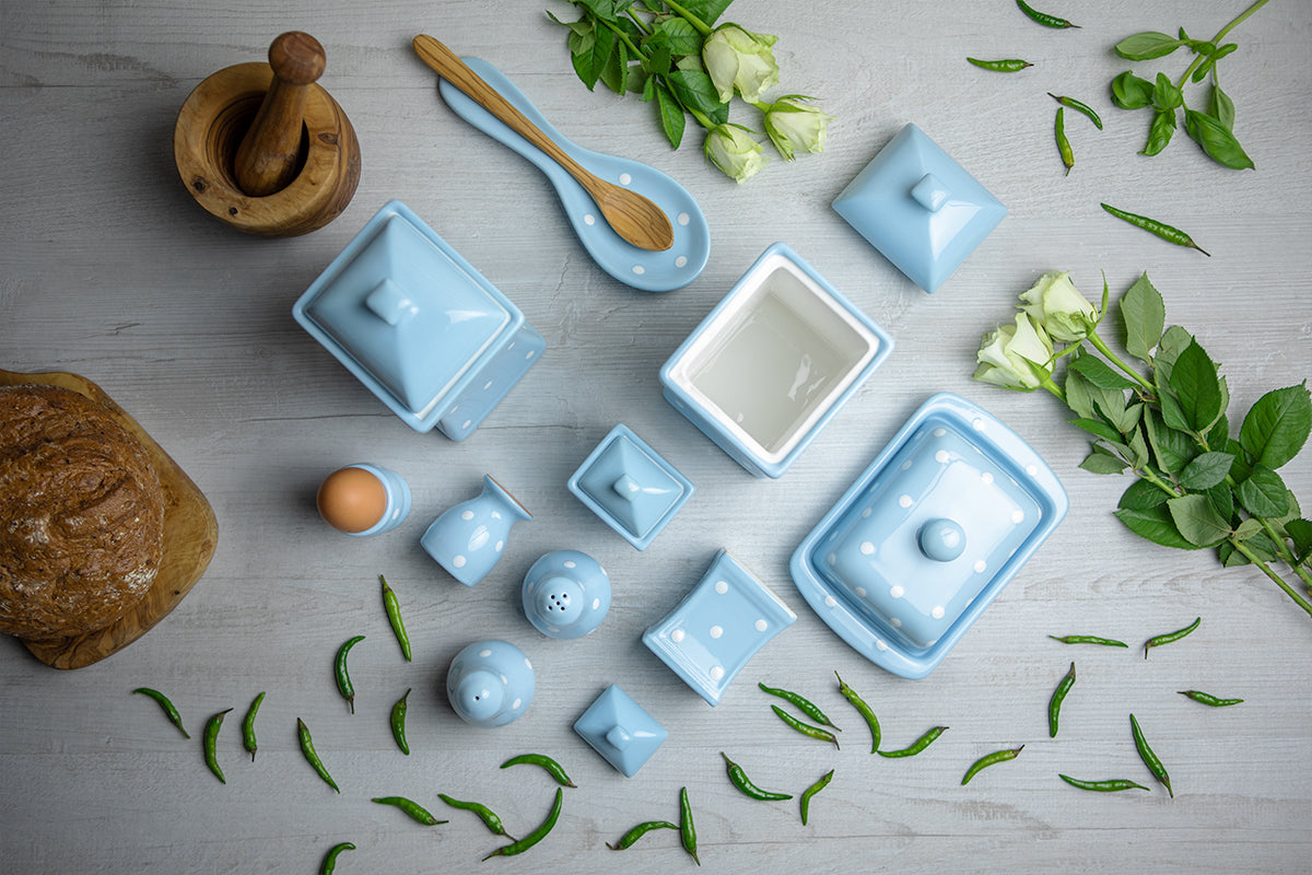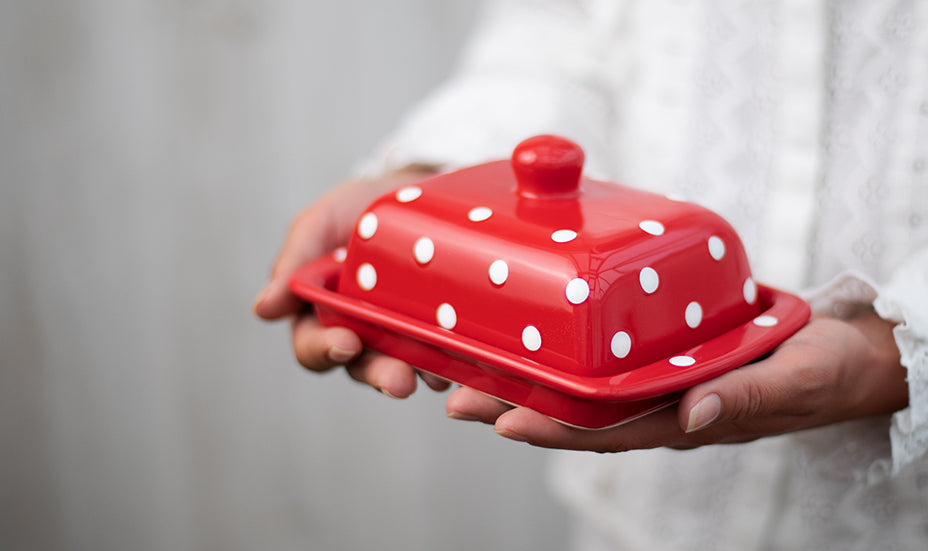 Red And White Polka Dot Spotty Handmade Hand Painted Ceramic Butter Dish With Lid