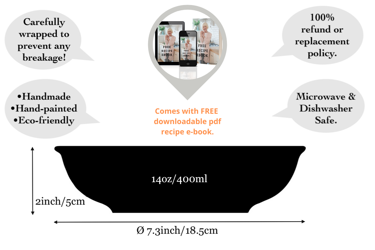 - We love being eco-friendly, so we will do everything to avoid extra tree-cutting while packaging our lavender pattern purple and cream handmade hand painted ceramic salad, pasta, fruit, cereal, soup bowls for you. Still, we will take extra care, so your ceramic bowls are well-protected while travelling to their loving owner.