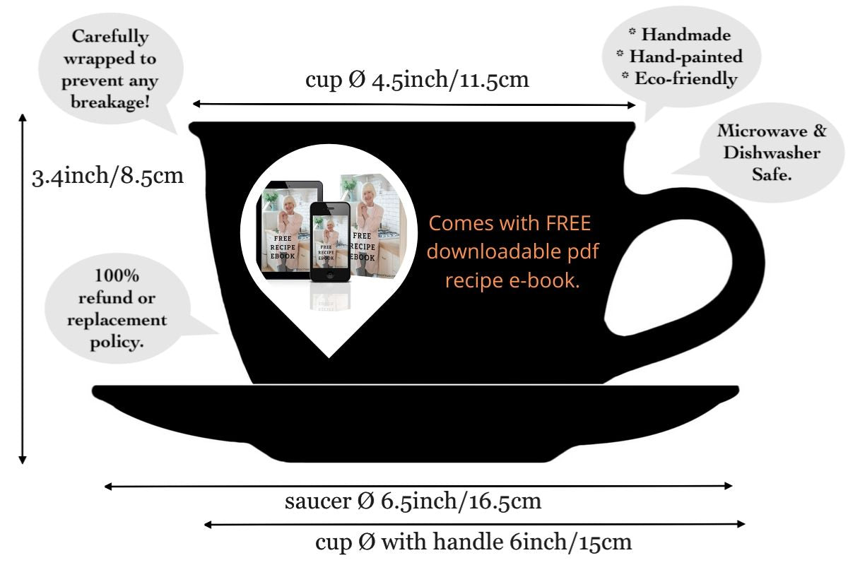 - We love being eco-friendly, so we will do everything to avoid extra tree-cutting while packaging our lavender pattern purple and cream handmade hand painted large unique ceramic cappuccino coffee tea cup with saucer for you. Still, we will take extra care, so your ceramic coffee mugs are well-protected while travelling to their loving owner. This is just an additional reason why we call our lavender pattern purple and cream handmade hand painted large unique ceramic cappuccino coffee tea cups eco cups.