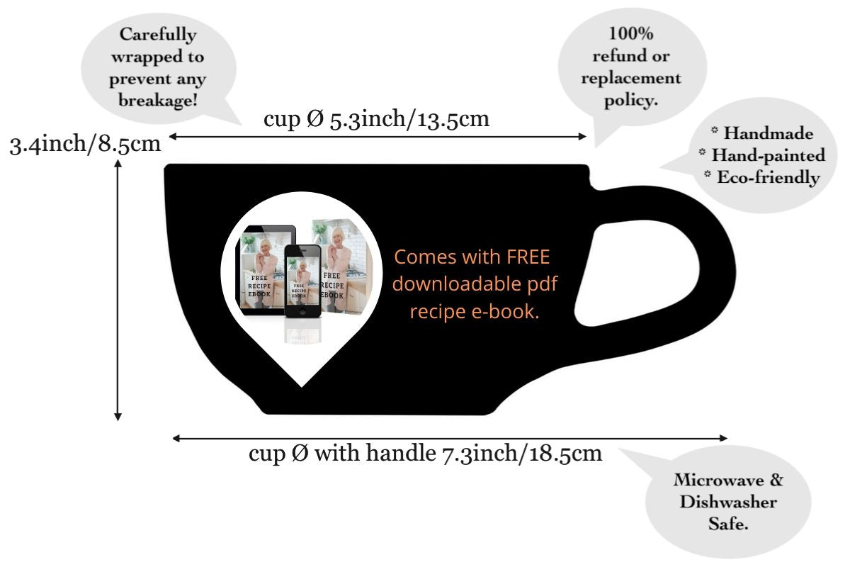 - We love being eco-friendly, so we will do everything to avoid extra tree-cutting while packaging our lime green and white polka dot spotty handmade hand painted ceramic extra large cappuccino coffee tea soup mugs, cups for you. Still, we will take extra care, so your lime green and white polka dot spotty handmade hand painted ceramic extra large cappuccino coffee tea soup mugs, cups are well-protected while travelling to their loving owner. This is just an additional reason why we call our lime green and white polka dot spotty handmade hand painted ceramic extra large cappuccino coffee tea soup mugs, cups Set ceramic eco cups.