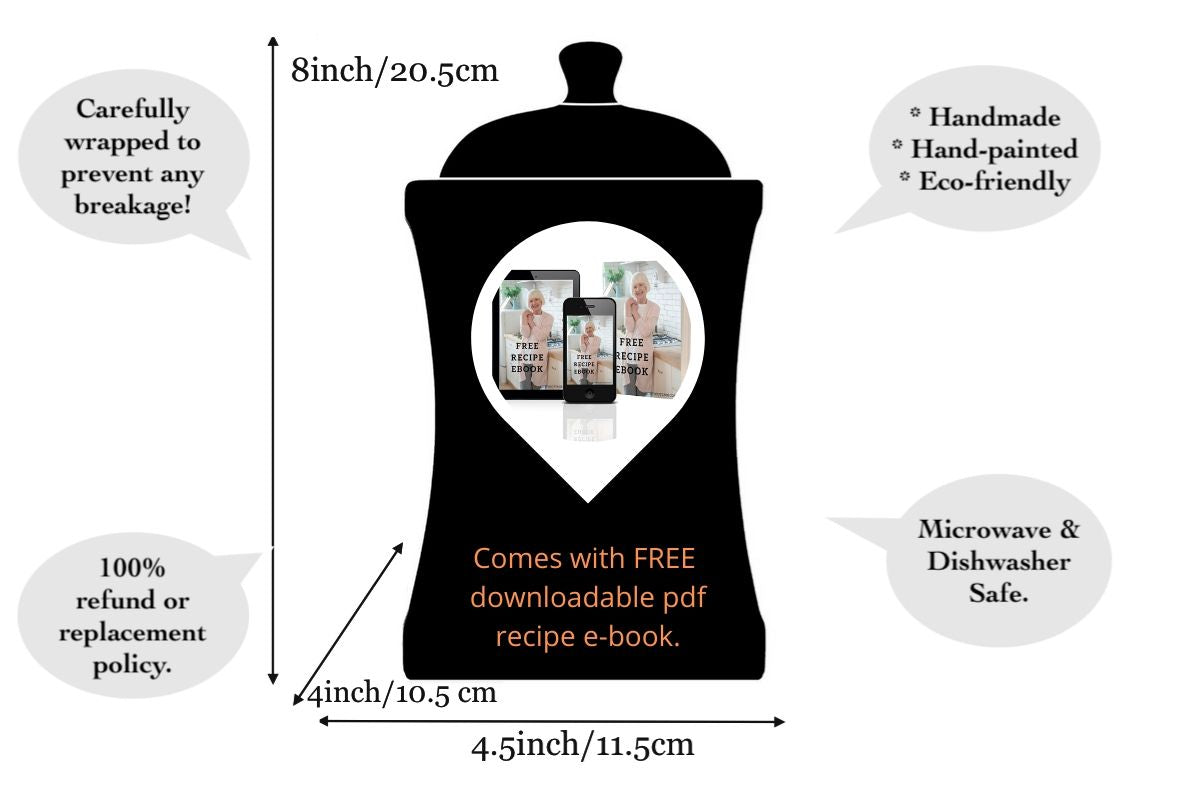 - We love being eco-friendly, so we will do everything to avoid extra tree-cutting while packaging our purple and white polka dot pottery handmade hand painted large ceramic kitchen canister set for you. Still, we will take extra care, so your ceramic jars are well-protected while travelling to their loving owner.