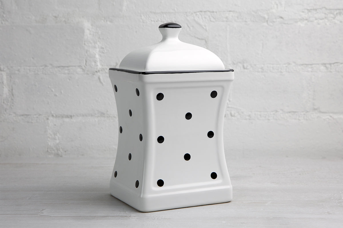 - Our white and black polka dot pottery handmade hand painted large ceramic kitchen canister sets have colourful, quirky design.