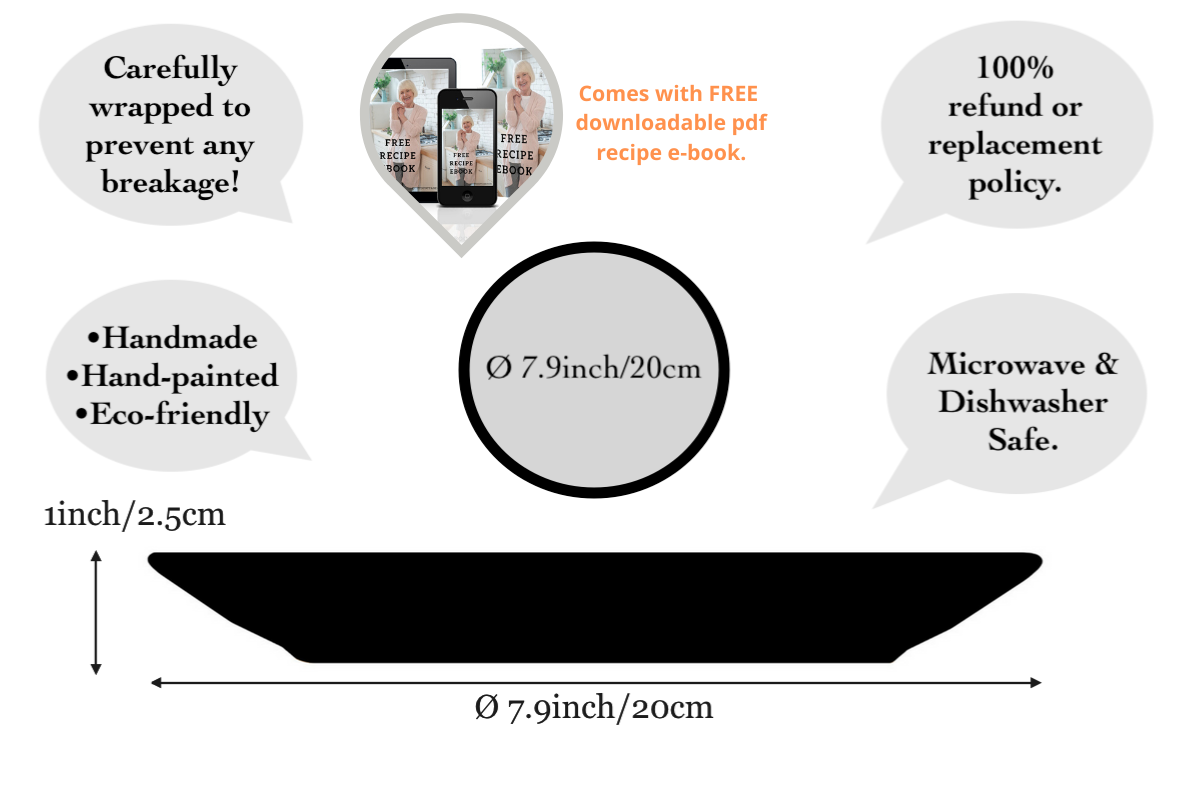 - We love being eco-friendly, so we will do everything to avoid extra tree-cutting while packaging our white and black polka dot spotty handmade hand painted glazed ceramic side, dessert plates for you. Still, we will take extra care, so your white and black polka dot spotty handmade hand painted glazed ceramic side, dessert plates are well-protected while travelling to their loving owner.